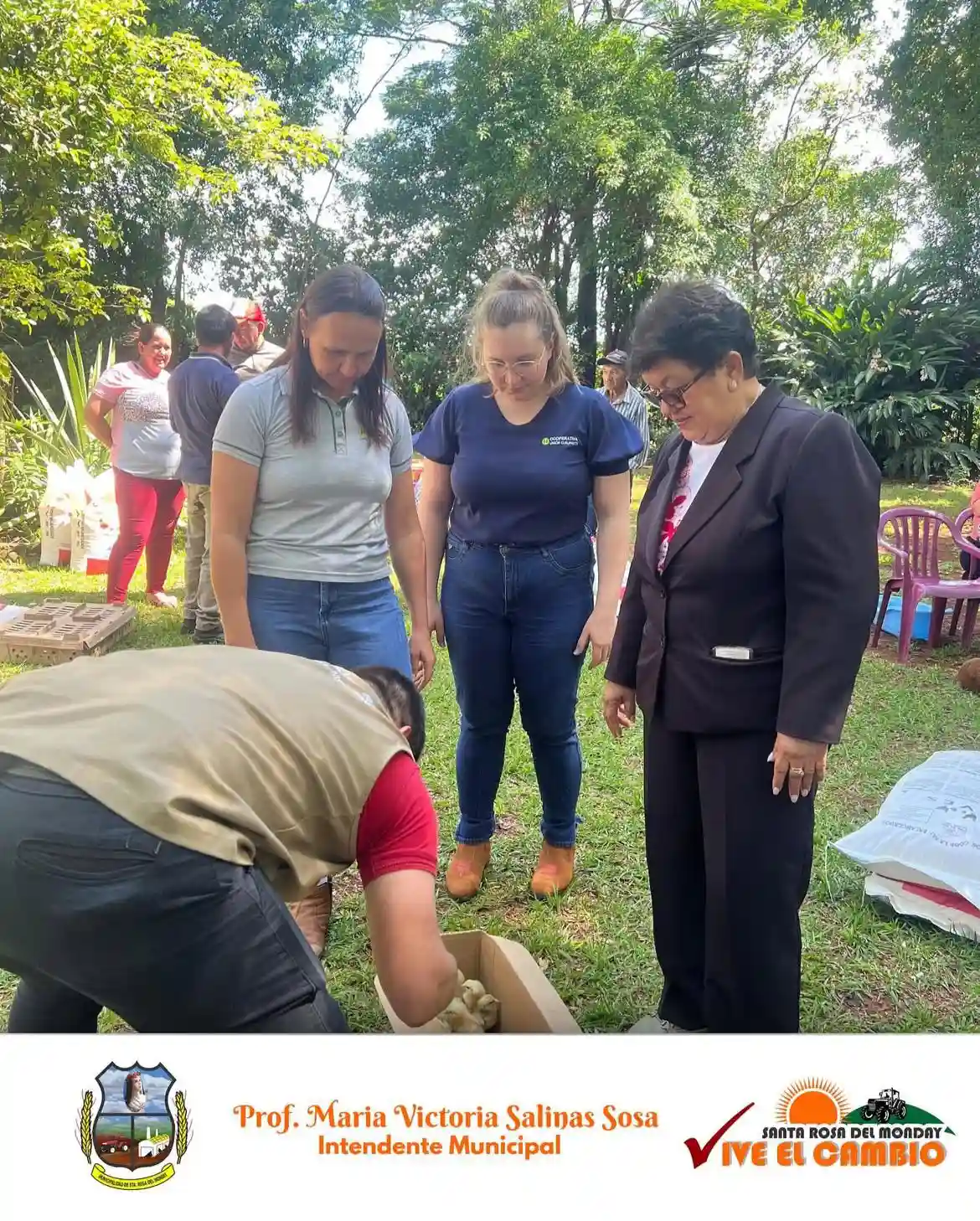 LA MUNICIPALIDAD DE SANTA ROSA DEL MONDAY CONTINUA FORTALECIENDO A LOS COMITES VECINALES DEL DISTRITO. EN ESTA OCASION, SE REALIZO LA ENTREGA DE POLLITOS, BALANCEADO INICIAL, BALANCEADO CRECIMIENTO Y ME MEDICAMENTOS; A 26 FAMILIAS DEL COMITE VECINAL MARIA AUXILIADORA DE LA COLONIA CAACUPE DELPARANA.